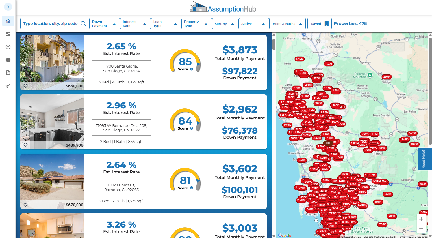 Browse thousands of properties with assumable financing as low as 2.25%. This is a smarter way to buy.
