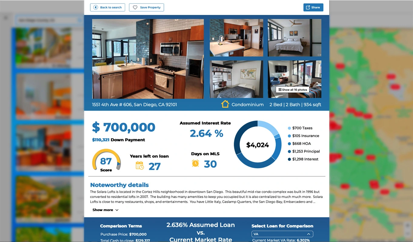 Our data begins with the largest, most accurate collection of homes for sale with assumable VA or FHA mortgages.